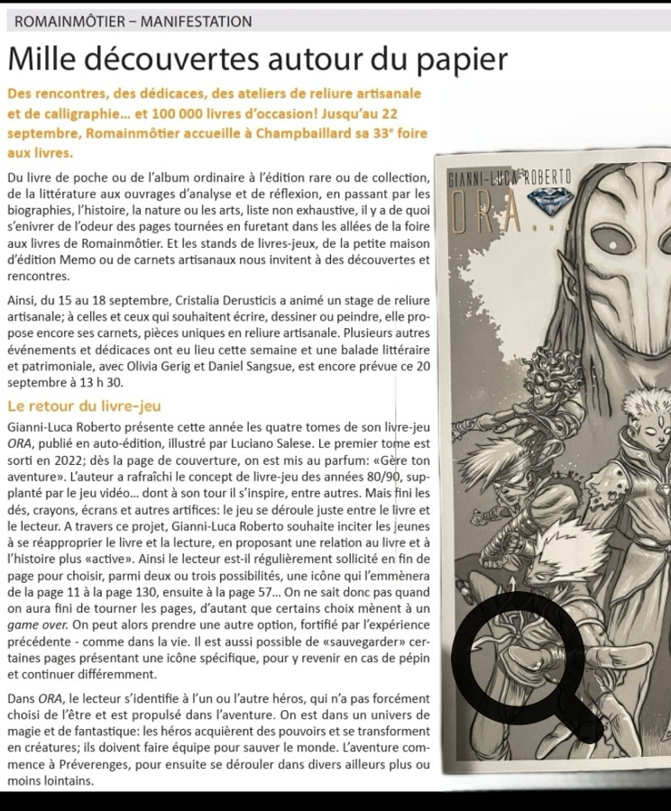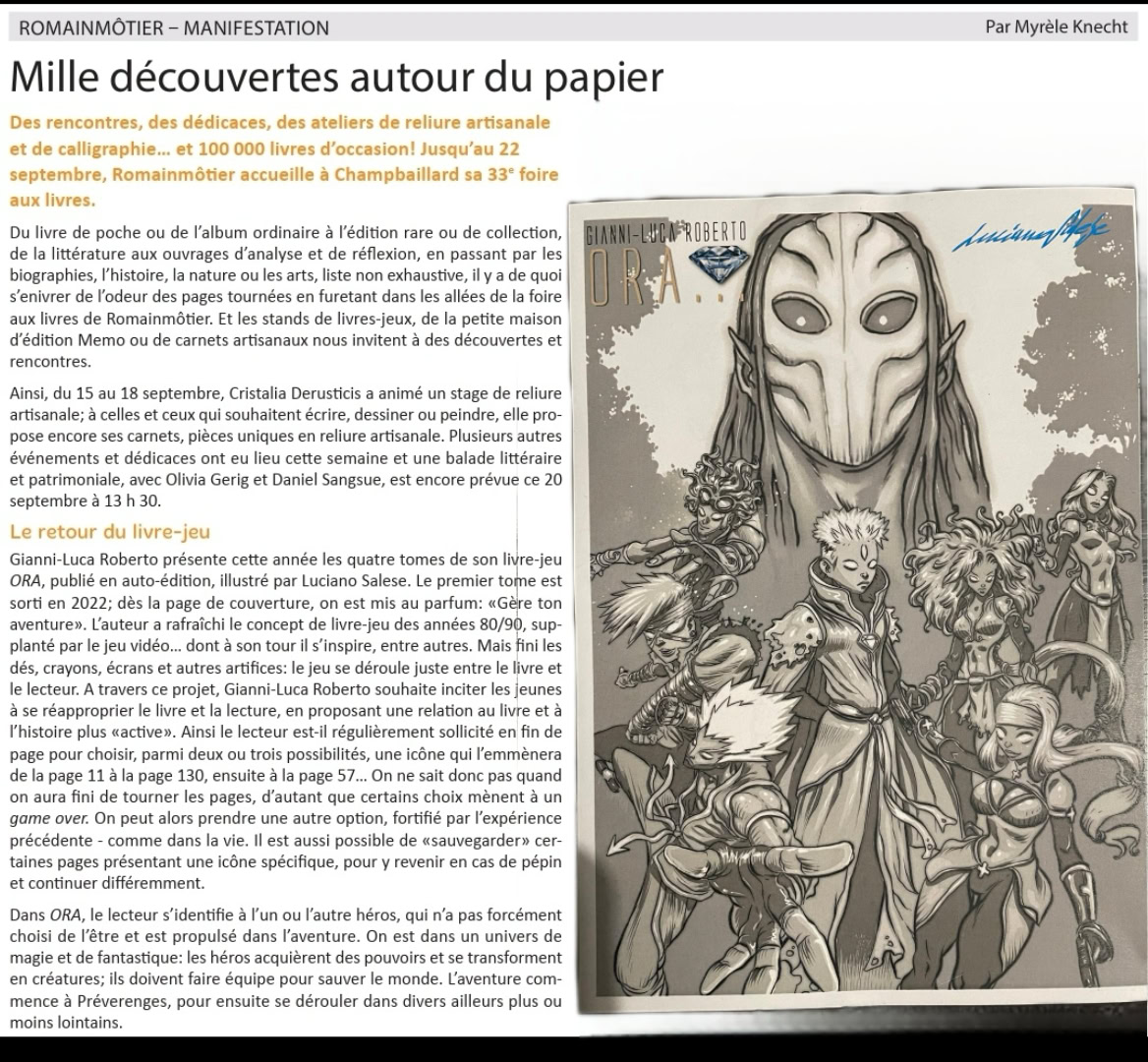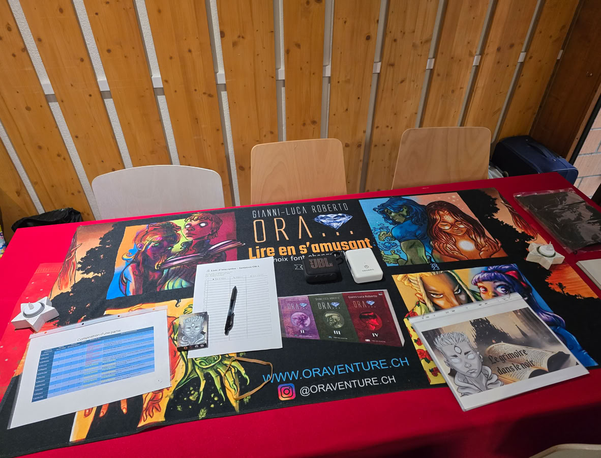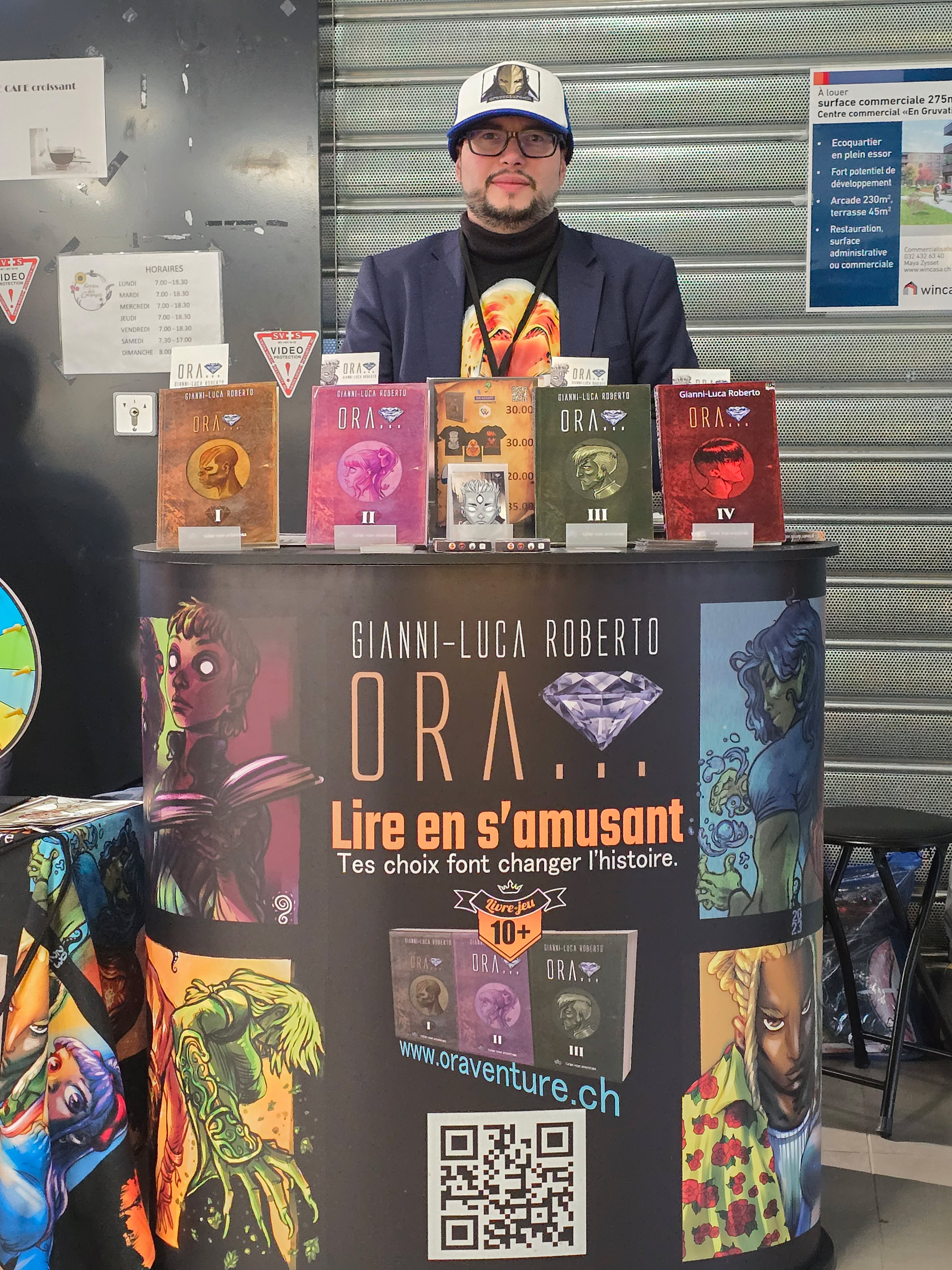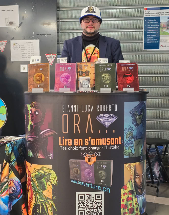 Ce week-end, Laurent Dormond nous emmène à Yverdon-les-Bains pour une séance de dédicaces à Payot. Nous y retrouverons Gianni-Luca Roberto, venu dédicacer le troisième tome dʹOra, un livre ou plutôt une aventure à choix multiples dont vous êtes le/la héros/héroïne. Lʹoccasion dʹévoquer avec lui la place du jeu à lire à une époque hyper connectée et numérique.